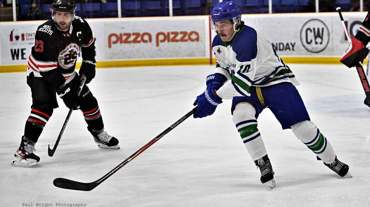 On Friday night, the Dundas Real McCoys hosted the St. Catharines Saints who were looking to avenge the drubbing they got in their last visit to the J.L. Grightmire Arena. It was a closely contested game with the visiting Saints coming away with a one goal victory.